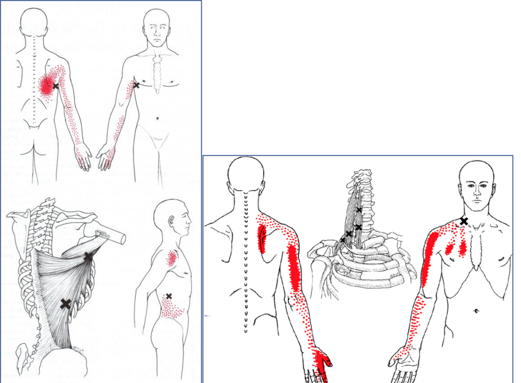 Right: The Scalenes are muscles above that can refer to the mid-shoulder blade region